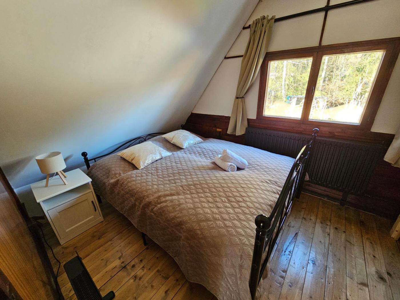 Two-Bedroom Chalet. This chalet features a fireplace. This chalet features 1 living room, 2 separate bedrooms and 1 bathroom with a shower and a hairdryer. Guests will find a stovetop, a refrigerator, a dishwasher and kitchenware in the well-fitted kitchen. The chalet also comes with a barbecue. Boasting a terrace with garden views, this chalet also features a tea and coffee maker and a flat-screen TV. The unit has 7 beds.